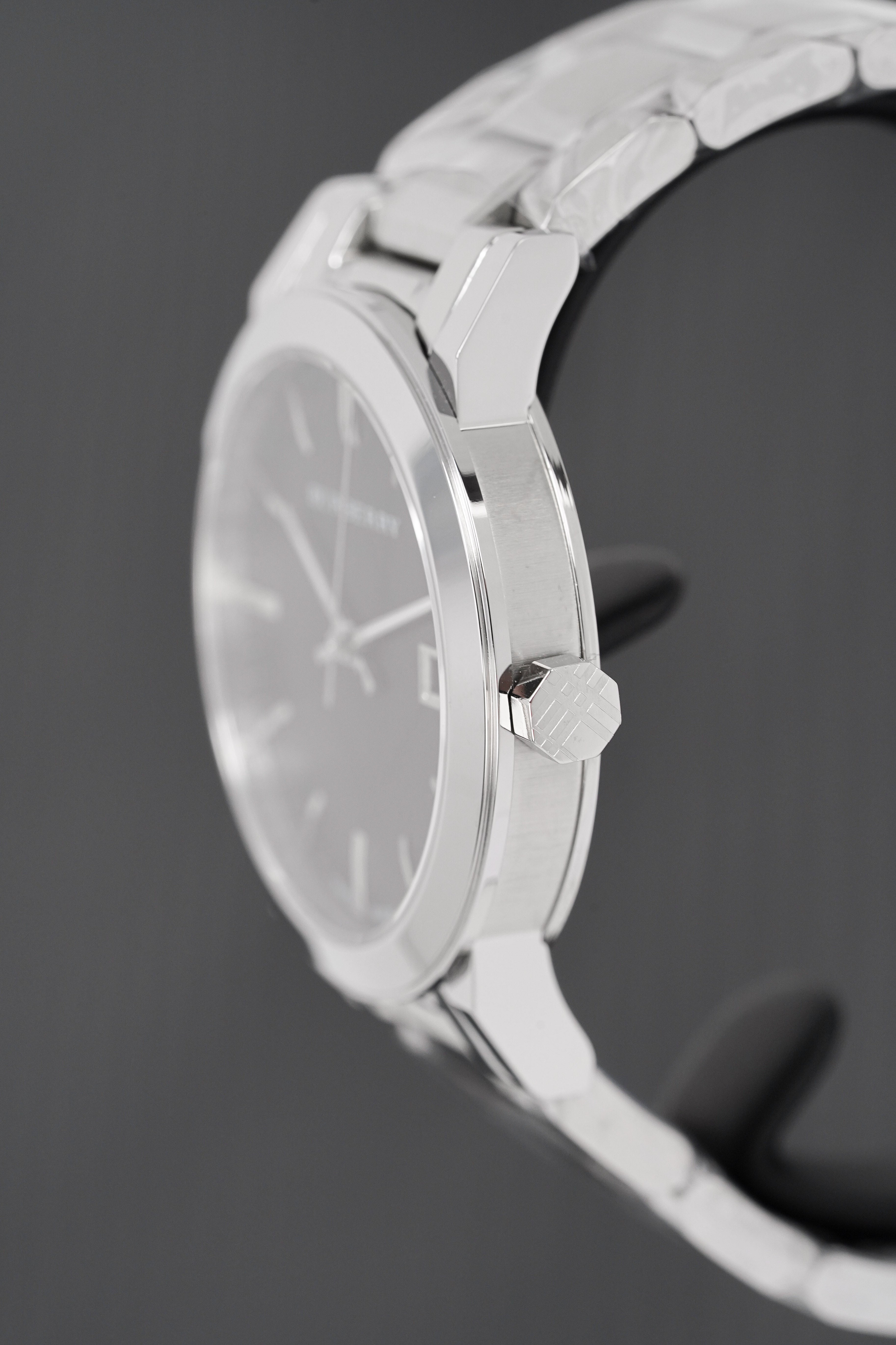 Introducing the Burberry BU9001 Unisex Watch, a timepiece that combines classic design with modern functionality. This watch features a 38mm stainless steel case paired with a matching stainless steel bracelet, offering a sleek and durable finish.