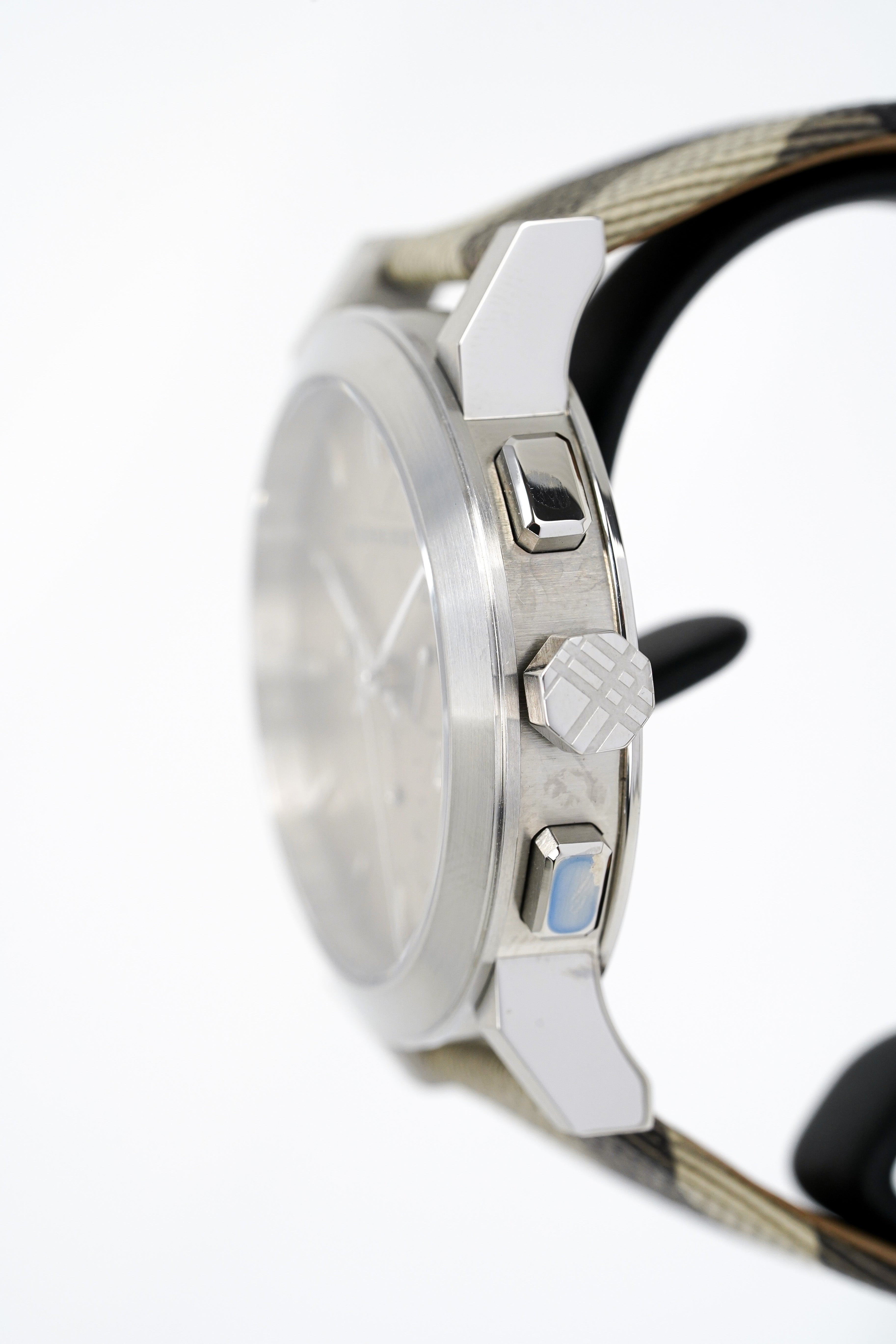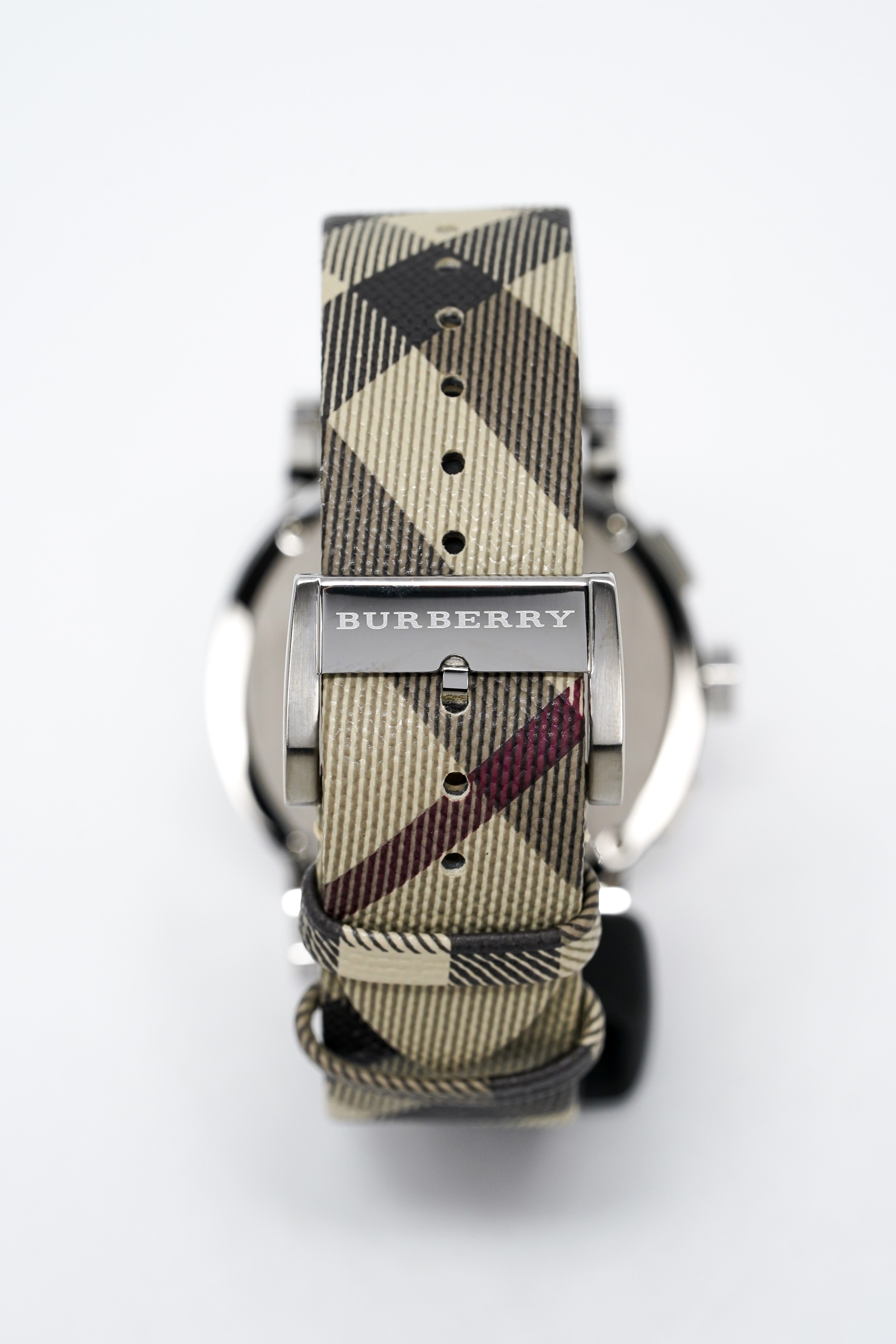 - Champagne Check-Pattern Dial – Embossed with Burberry’s signature motif for a distinguished look.