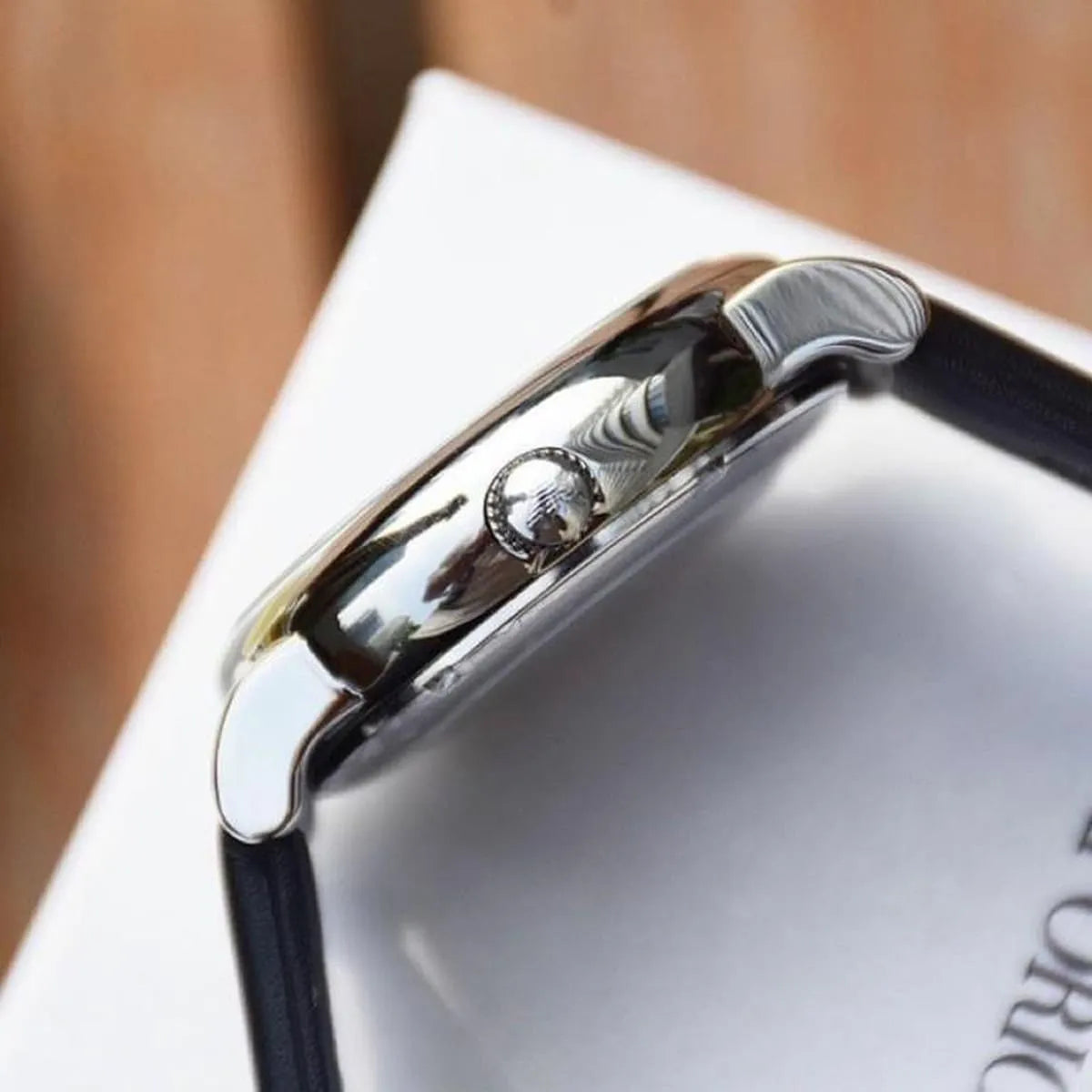 Emporio Armani Analog Automatic Black Dial Black Leather Strap Watch For Men - AR60040