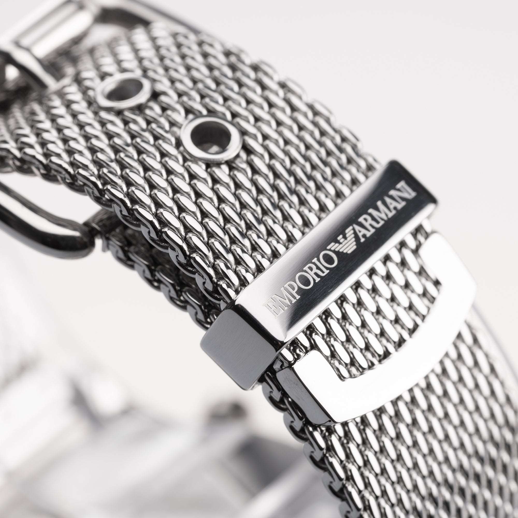Enhance your elegance with the Emporio Armani AR1811 Men's Chronograph Watch. This sophisticated timepiece is designed for the modern man who values both style and functionality. Featuring a sleek stainless steel mesh bracelet and a striking black dial, the AR1811 is perfect for any occasion, from formal events to casual outings.
