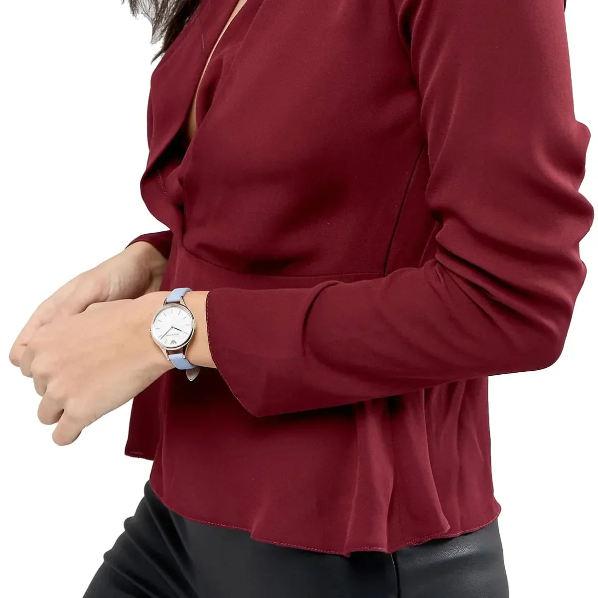 Emporio Armani Aurora Quartz Mother of Pearl White Dial Blue Leather Strap Watch For Women - AR11109