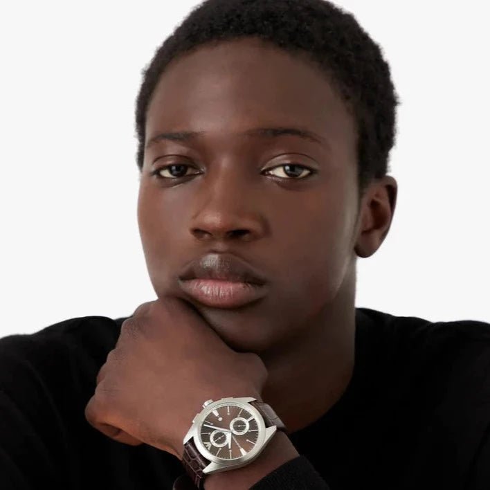 The brown dial and leather strap give it a sophisticated look that will never go out of fashion. The watch is water resistant up to 50 meters, making it perfect for any activity. The watch is also lightweight and comfortable to wear, making it a great choice for everyday wear.