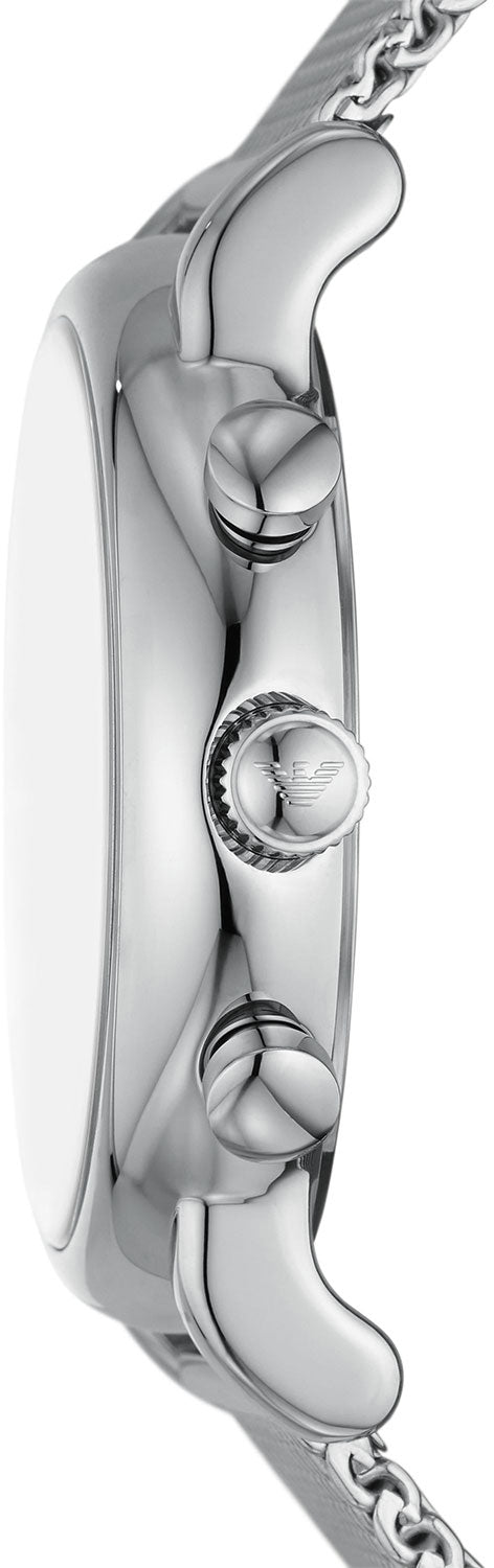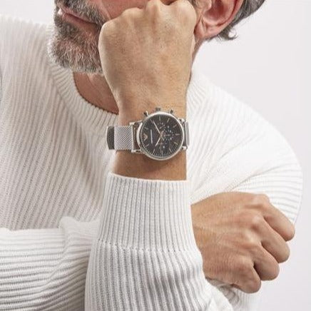 Emporio Armani Luigi Chronograph Quartz Black Dial Silver Mesh Bracelet Watch For Men - AR11429