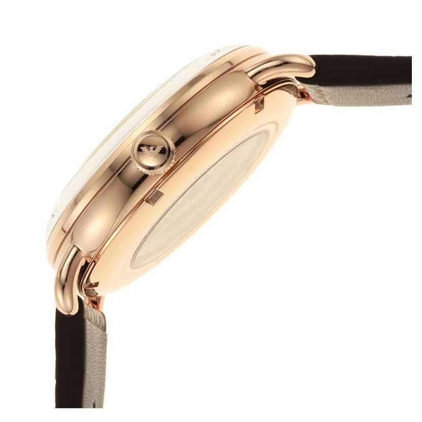 Emporio Armani Meccanico Automatic White Dial Brown Leather Strap Watch For Men - AR60027