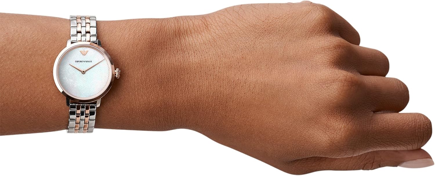 Emporio Armani Modern Slim Analog Mother of Pearl Dial Two Tone Steel Strap Watch For Women - AR11157