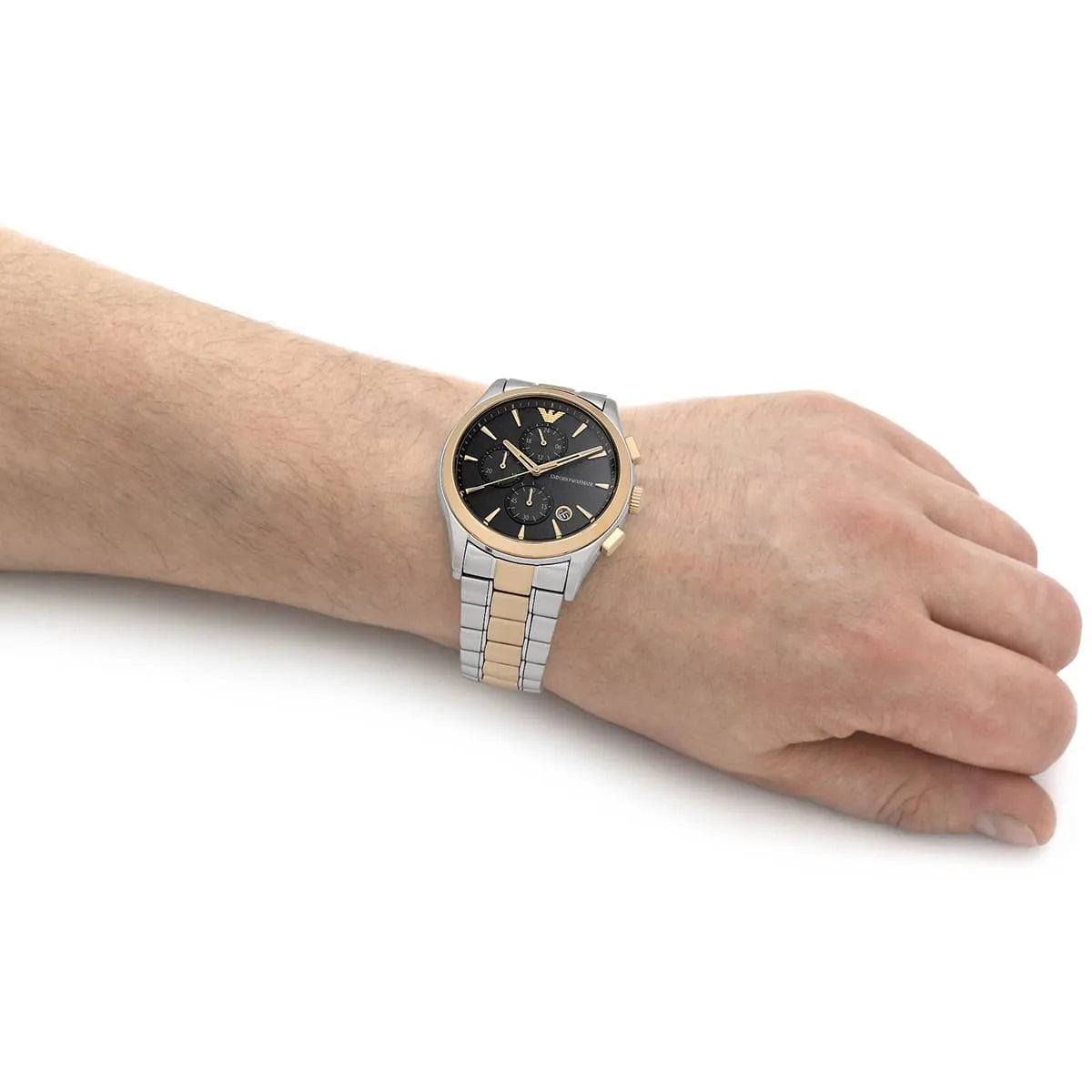 Emporio Armani Paolo Chronograph Grey Dial Two Tone Steel Strap Watch For Men - AR11527