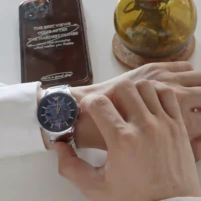 With its sleek silver steel strap and striking blue dial, the Emporio Armani Renato Automatic Blue Dial Watch exudes elegance and style. This automatic watch features a durable steel strap and a precise movement, making it a perfect choice for any modern man who appreciates expert craftsmanship and sophisticated design. Elevate your wrist game with this luxurious timepiece.
