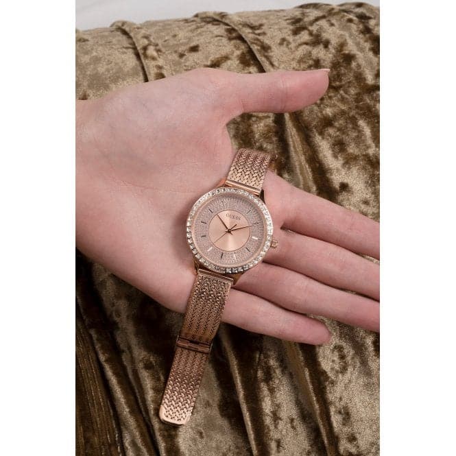 Guess Ladies Soiree Stainless Steel Mesh Rose Gold Watch GW0402L3