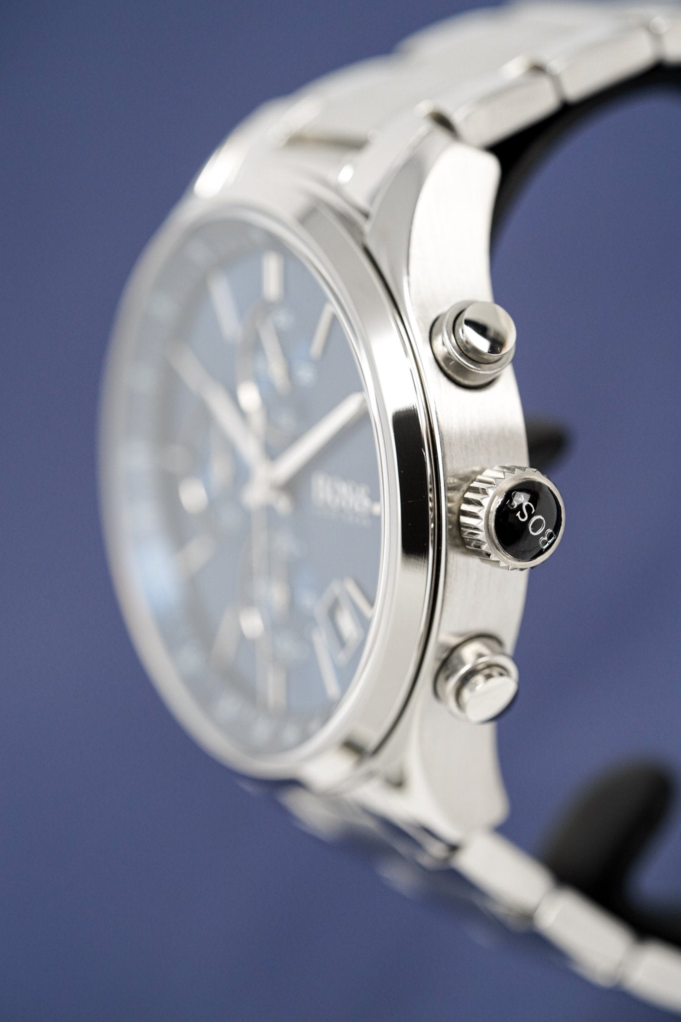 Discover the blend of luxury and functionality with the Hugo Boss Grand Prix Blue Chronograph. Perfect for those who appreciate timeless design and impeccable craftsmanship.