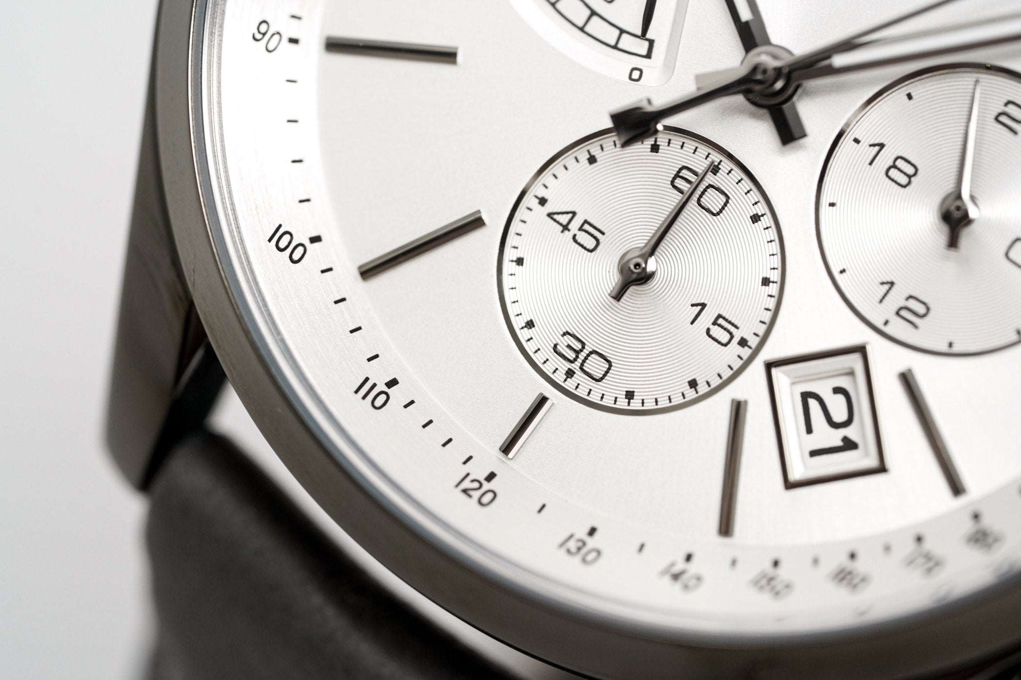 Japanese Made Quartz Chronograph Movement. Running Seconds. 30 Minute Counter. 24 Hour Indicator. Date.