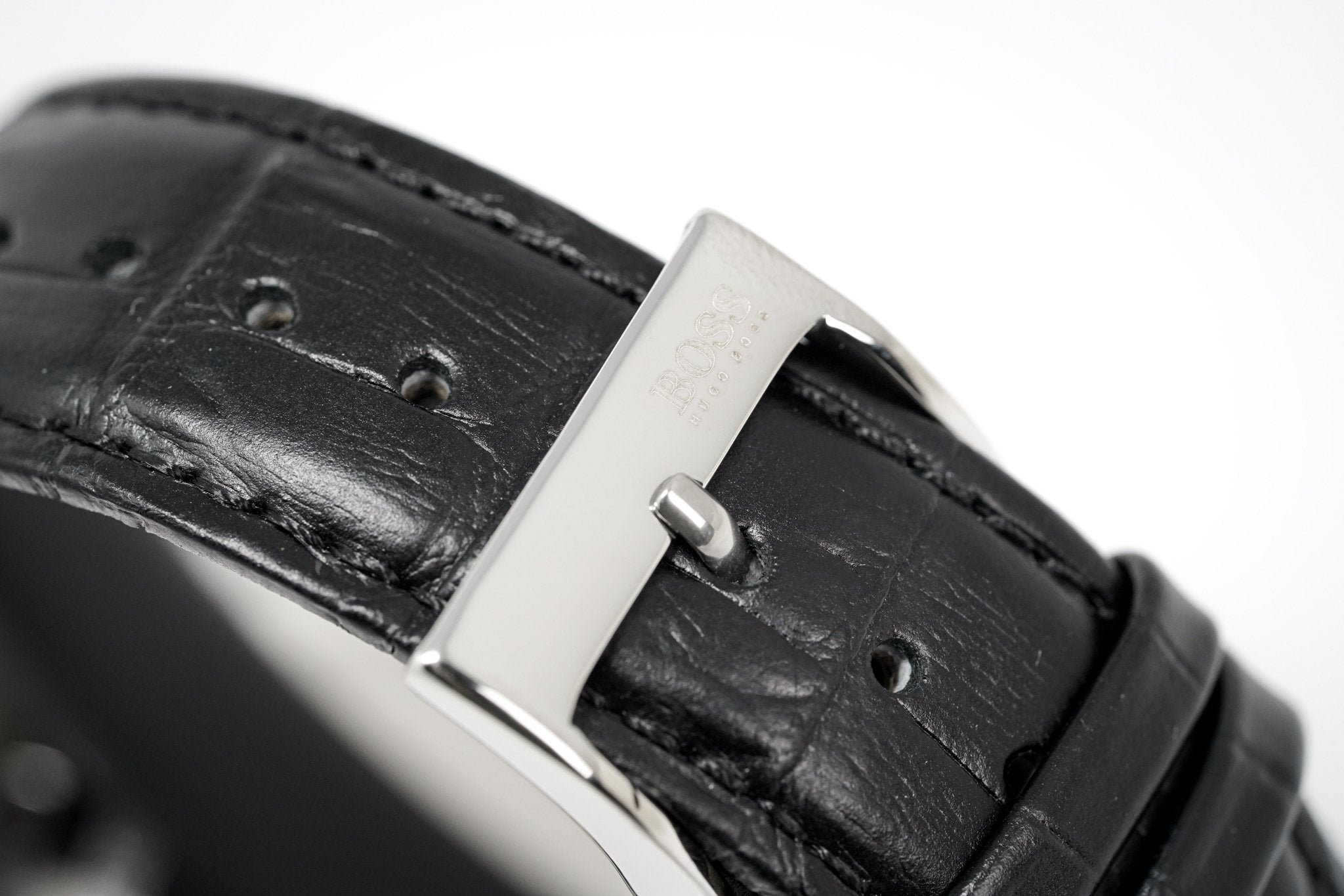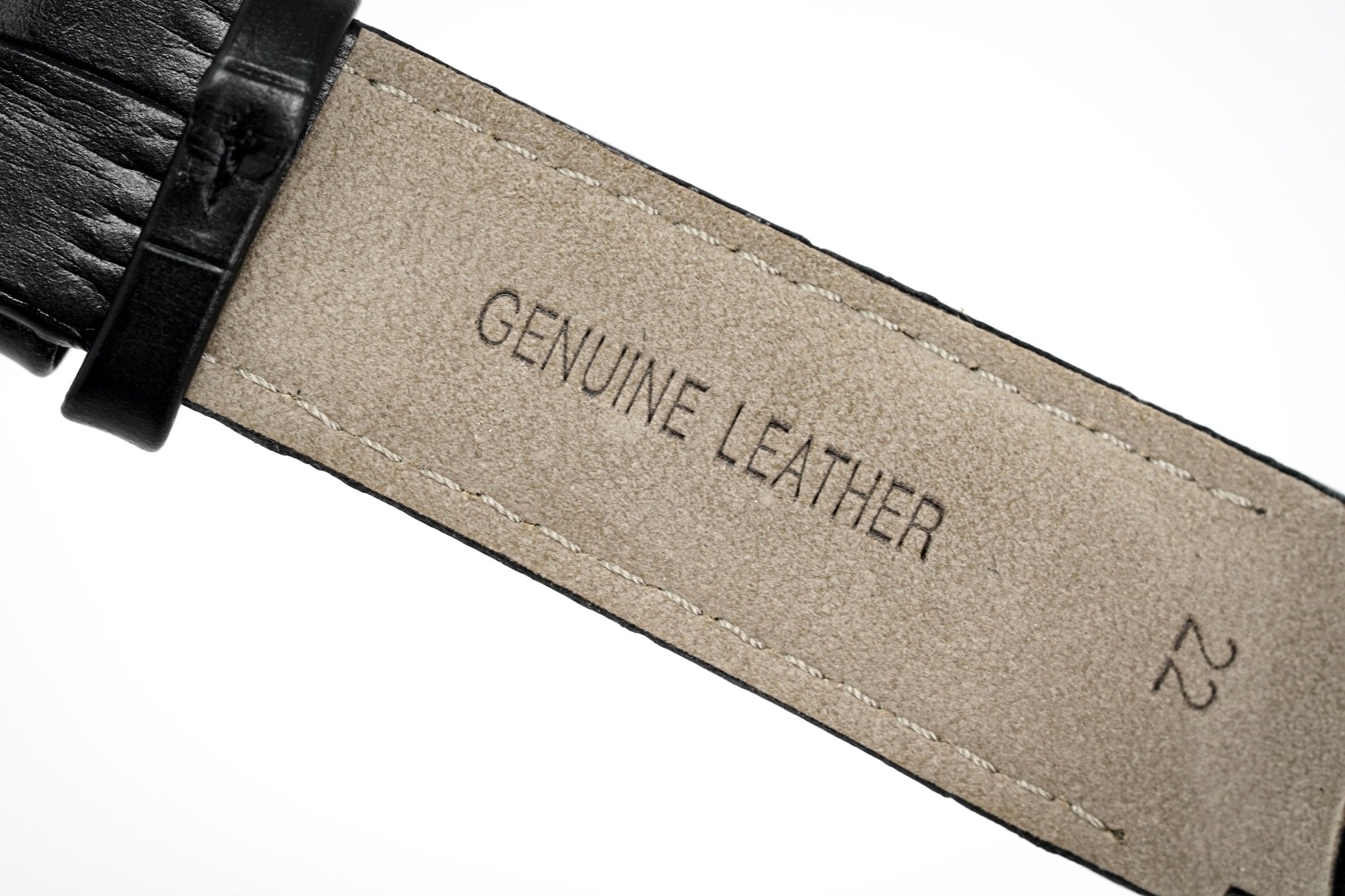 Black Croco Imitation Leather Strap with Stainless Steel Pin Buckle.