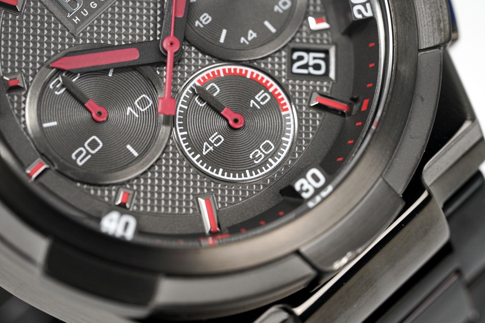 Grey Guillochè Dial. Stainless Steel Hands. Stainless Steel Stick Indexes. Date Window at 4:30.