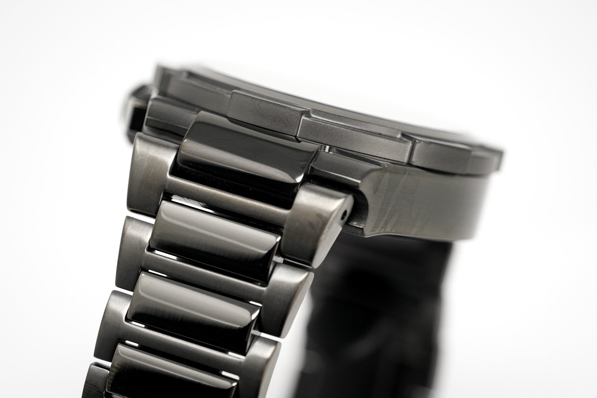 45mm Gun Metal PVD Plated Stainless Steel Case. Scratch Resistant Mineral Crystal.