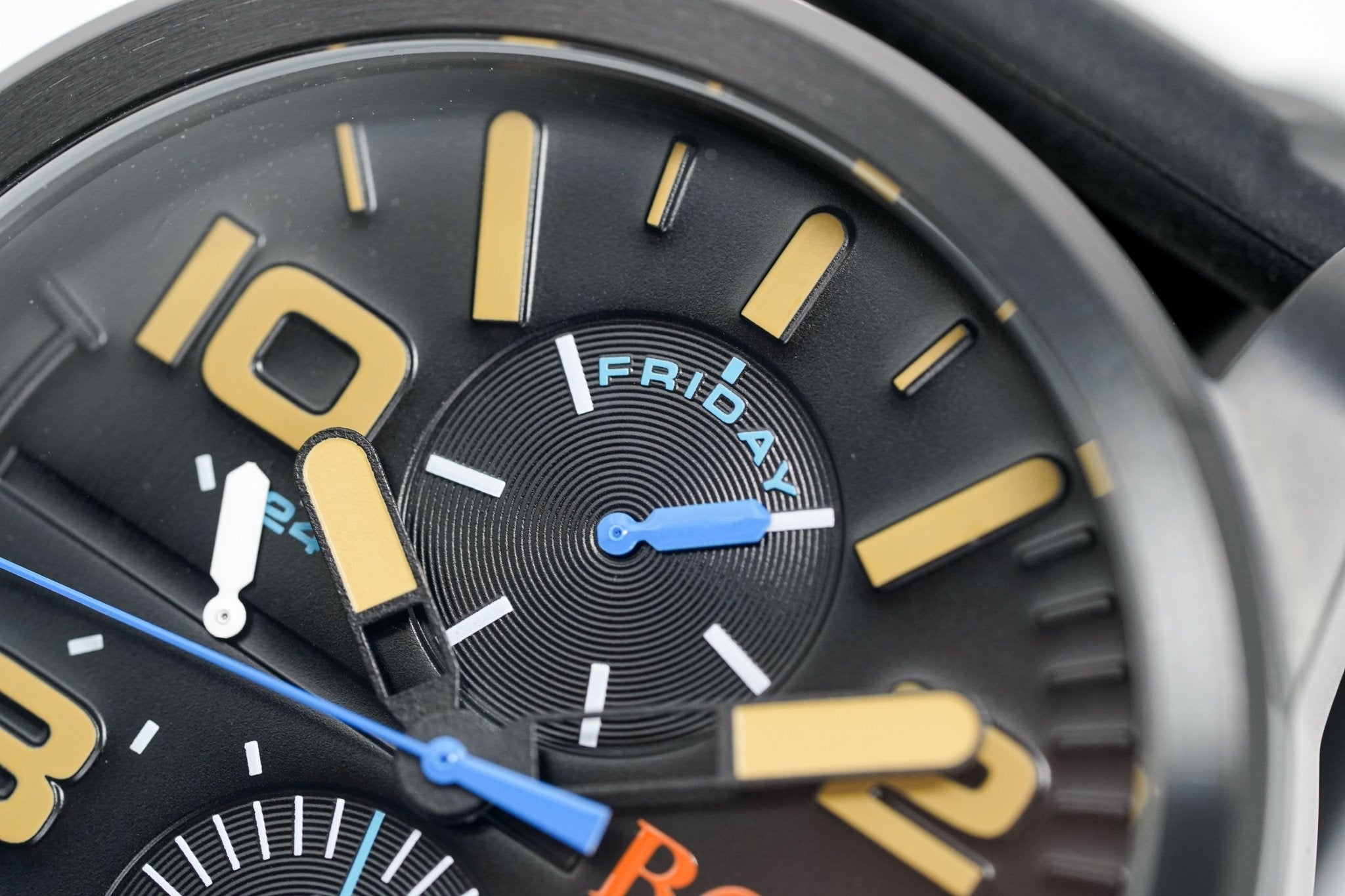 Japanese Made Quartz Movement. Day And Date Subdials With 24 Hour Subdial.