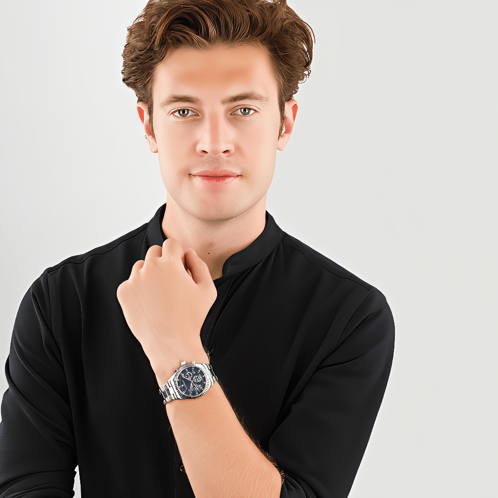 Features: Stainless Steel, Date, Day, 24-Hour Sub Dials, Fluted Bezel