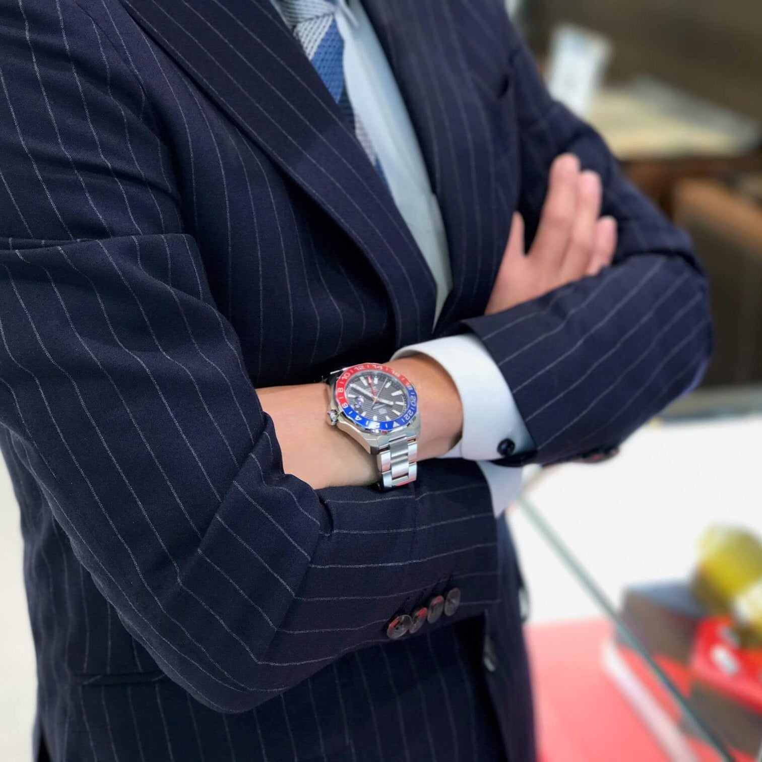 A prestigious, precision-driven dive watch of professional caliber and everyday versatility. The blue and red bezel stands out in every context – casual, travel, office, or the ocean depths.