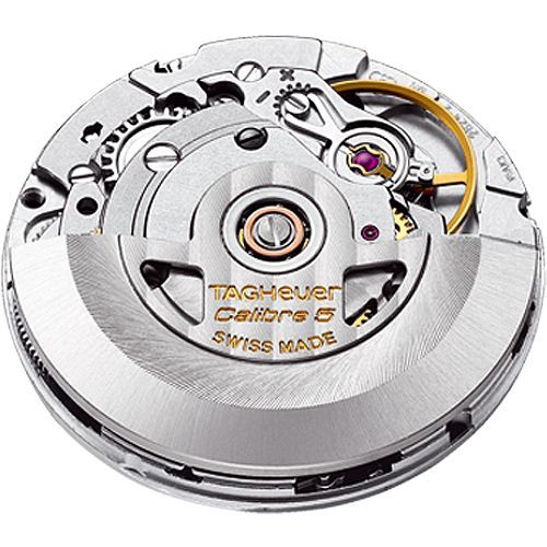 Tag Heuer Aquaracer Calibre 5 has a Stainless steel case with a stainless steel bracelet. Uni-directional rotating stainless steel bezel. Silver dial with luminous silver-tone hands and index hour markers. Minute markers around the outer rim. Dial Type: Analog. Luminescent hands and markers. Date display at the 3 o’clock position. Tag Heuer calibre 5 automatic movement with a 38-hour power reserve. Scratch resistant sapphire crystal.