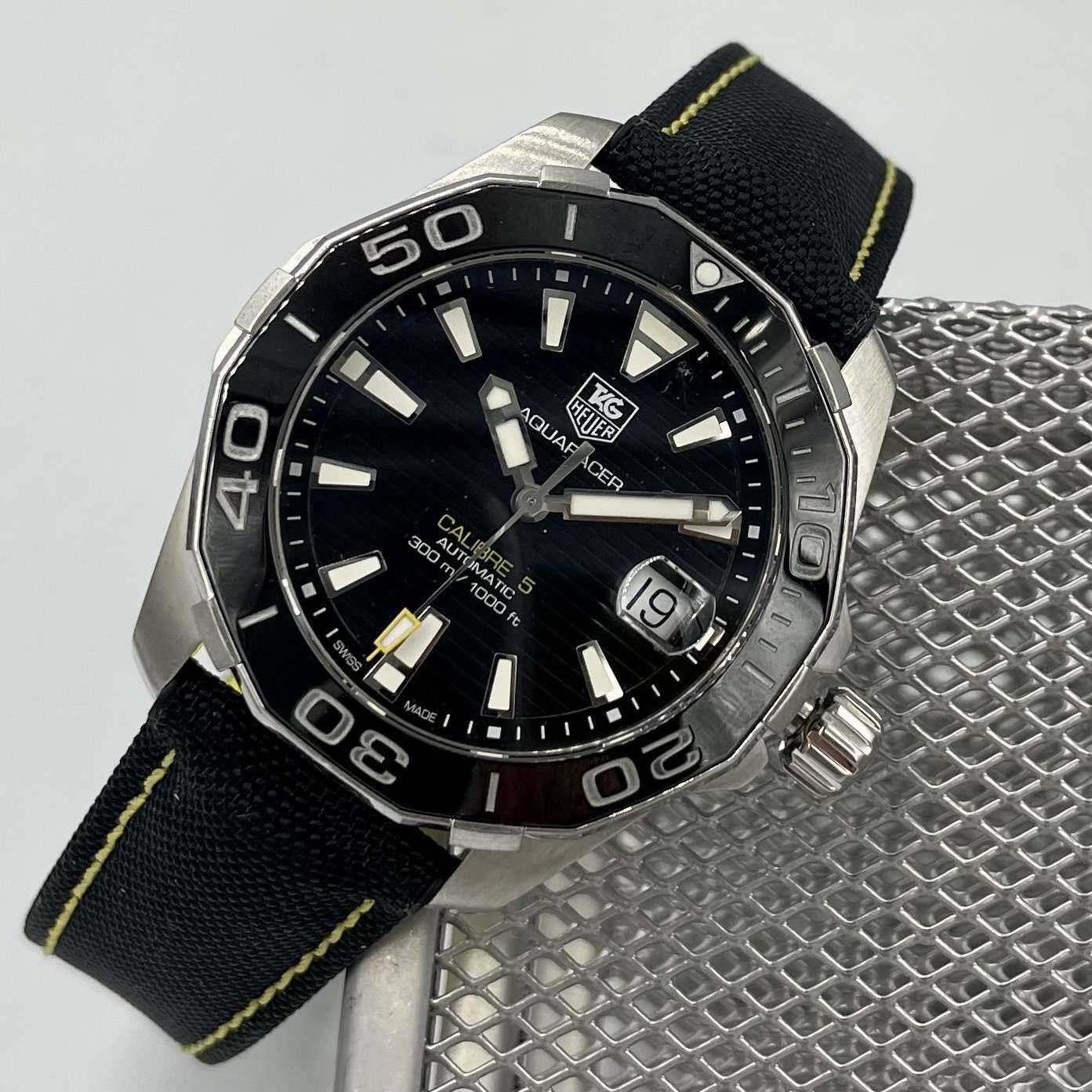 Tag Heuer Aquaracer Calibre 5 Automatic Black Dial Black Nylon Strap Watch for Men - WAY211A.FC6362