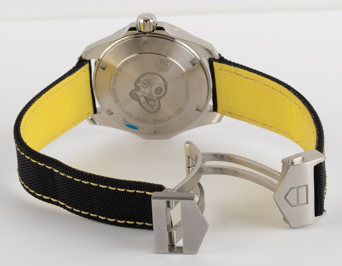 Swiss-made, this bold TAG Heuer Aquaracer is an aesthetic 41 mm watch. This model features a Steel case and a Calibre 5 Automatic movement.