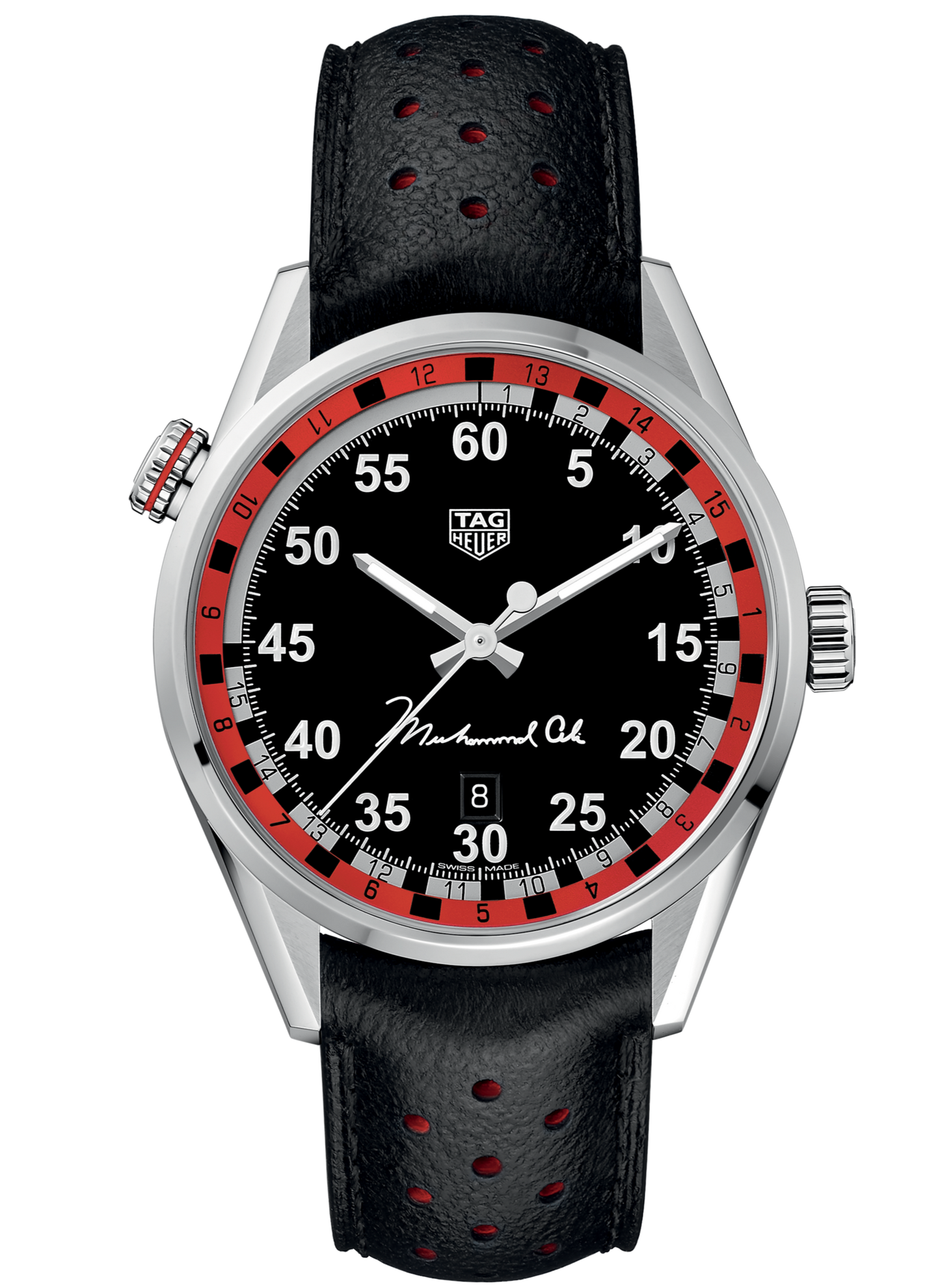 This special edition features an engraving of Muhammad Ali on the case back along with his signature printed on the dial above 6 o'clockPowered by an Tag Heuer Calibre 5 self-winding mechanical movement which contains 26 jewels and has an approximate 38-hour power reserve. Date display is located at the 6 o'clock position. Comes with Tag Heuer box, papers