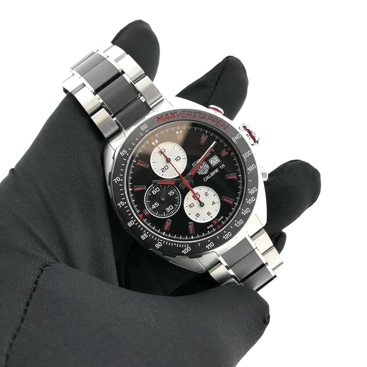- Case Back: Solid stainless steel, engraved with TAG Heuer logo