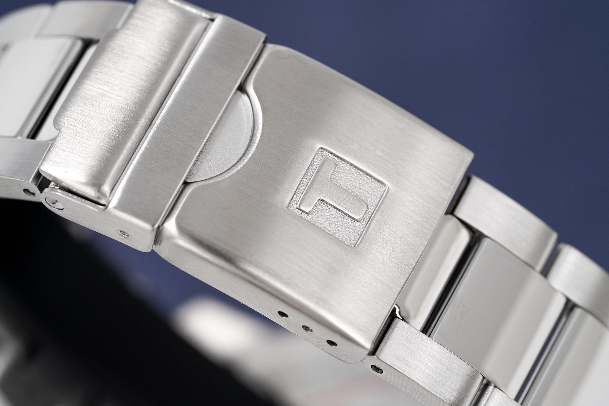 Blue Dial with Stainless Steel Luminous Hands and Indexes - Small Seconds - Date Window Between 4 and 5 O'Clock - 1/10 Seconds, 60 Seconds and 30 Minutes Sub-Dials - ADD and SPLIT Functions.