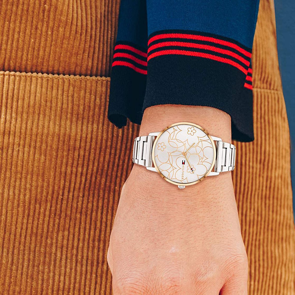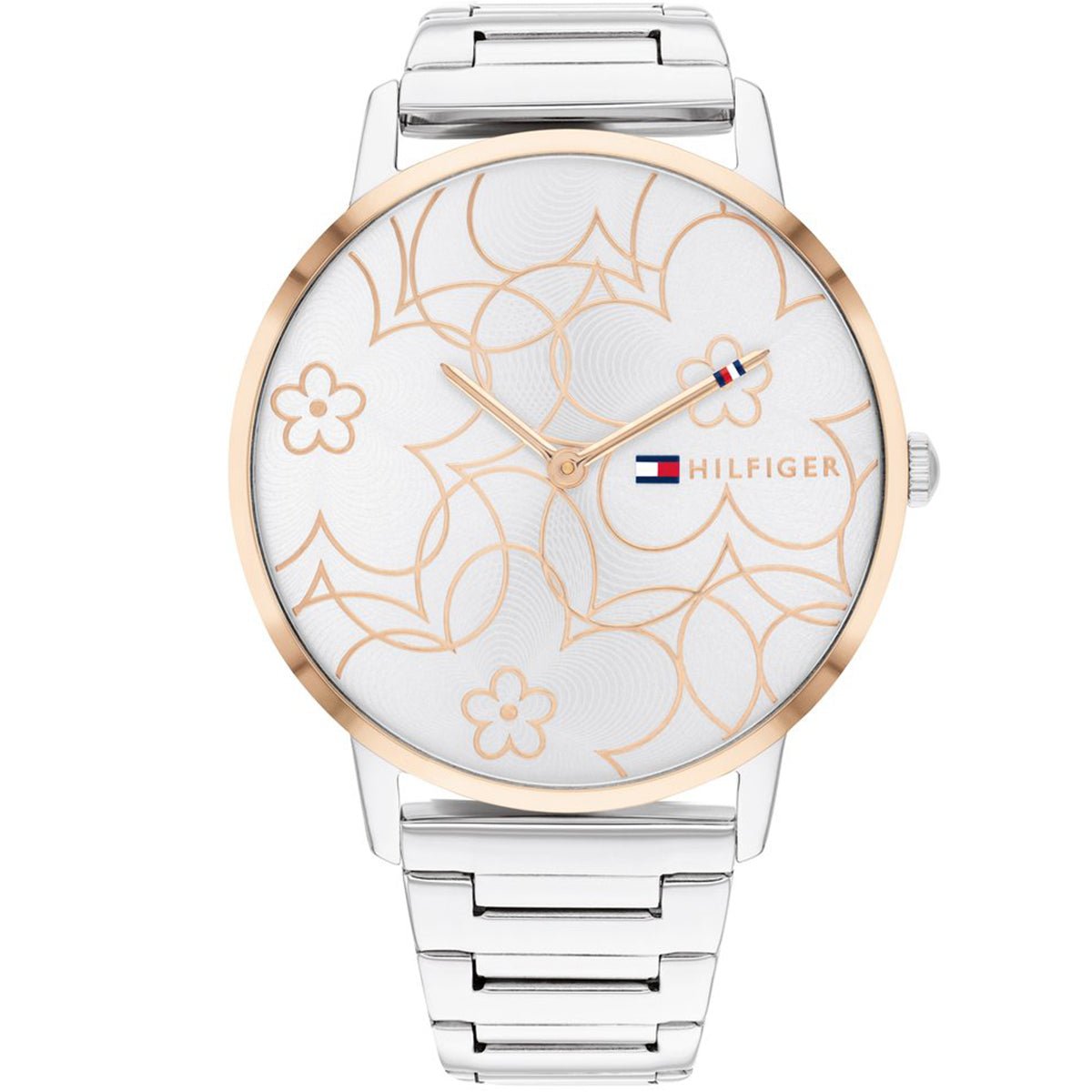 A casual slim watch with floral inspirations. This 40MM case is available in stainless steel, carnation-gold, gold-plated finishes and two-tone finishes. The dial features a sunray floral texture with iconic Tommy elements. Available as a mesh, bracelet or leather strap.