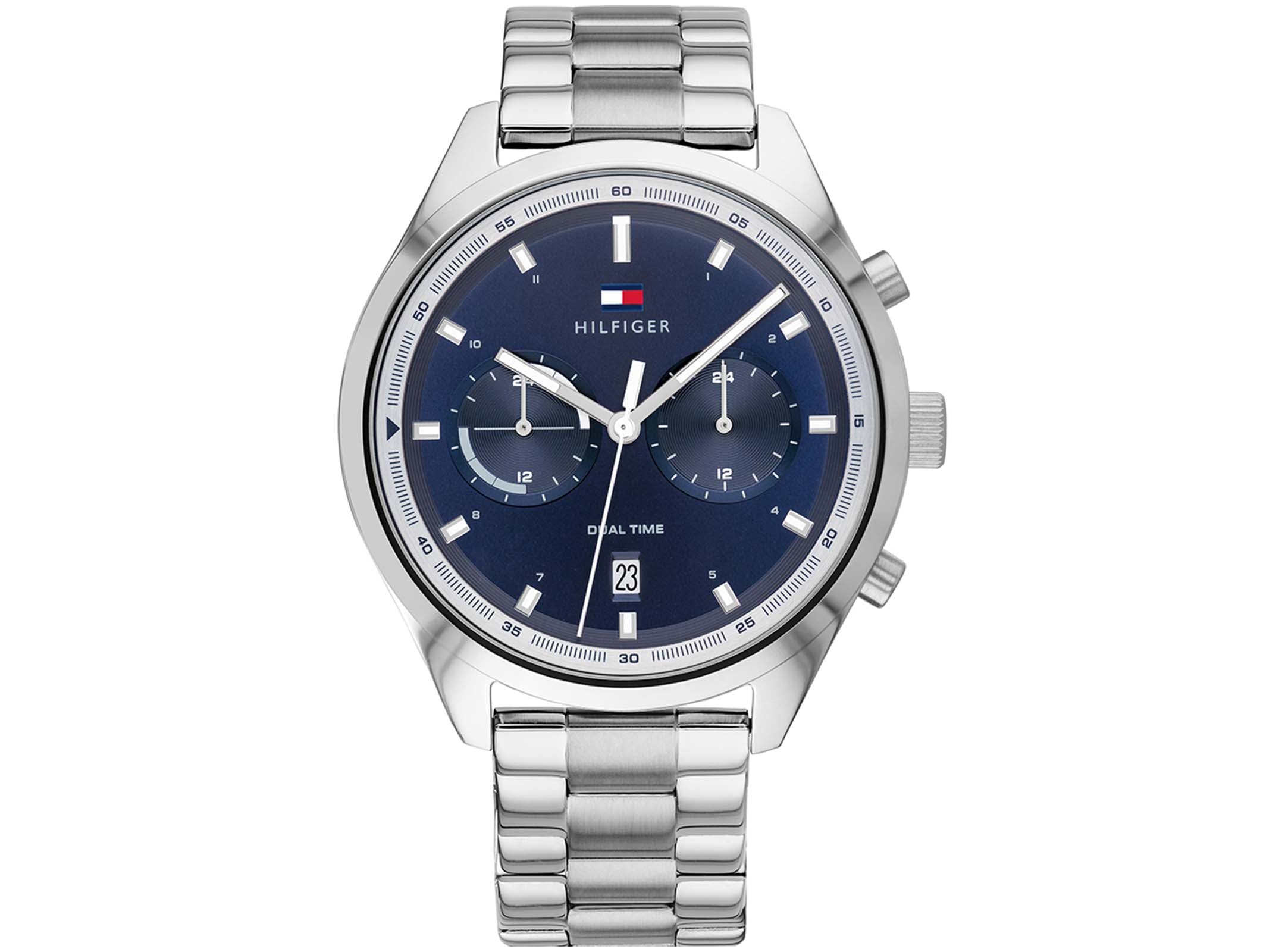 Case diameter: 44 mm,case thickness: 10 mm, case colour: Silver and dial colour: Blue.