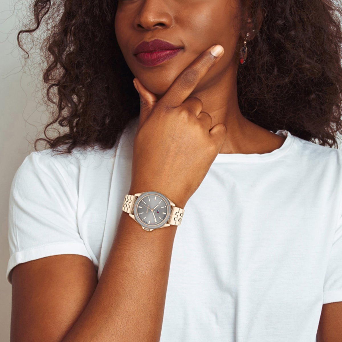 Tommy Hilfiger Emma 1782482 is a beautiful and attractive Ladies watch from Emma collection. Case is made out of Plated Stainless Steel while the dial colour is Silver. In regards to the water resistance, the watch has got a resistancy up to 50 metres. It means it can be submerged in water for periods, so can be used for swimming and fishing. It is not recommended for high impact water sports.