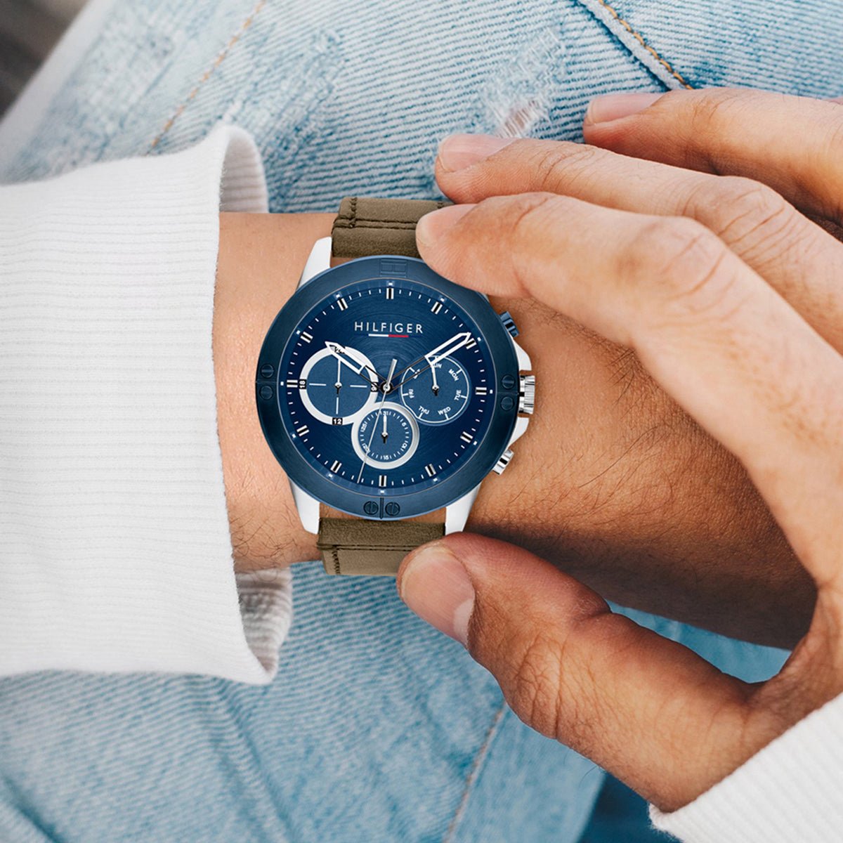 Tommy Hilfiger Harley 1791895 is a functional and very impressive Gents watch from HARLEY collection. Case material is Plated Stainless Steel while the dial colour is Blue. 50 meters water resistance will protect the watch and allows it to be submerged in water for periods, so can be used for swimming and fishing. It is not recommended for high impact water sports.