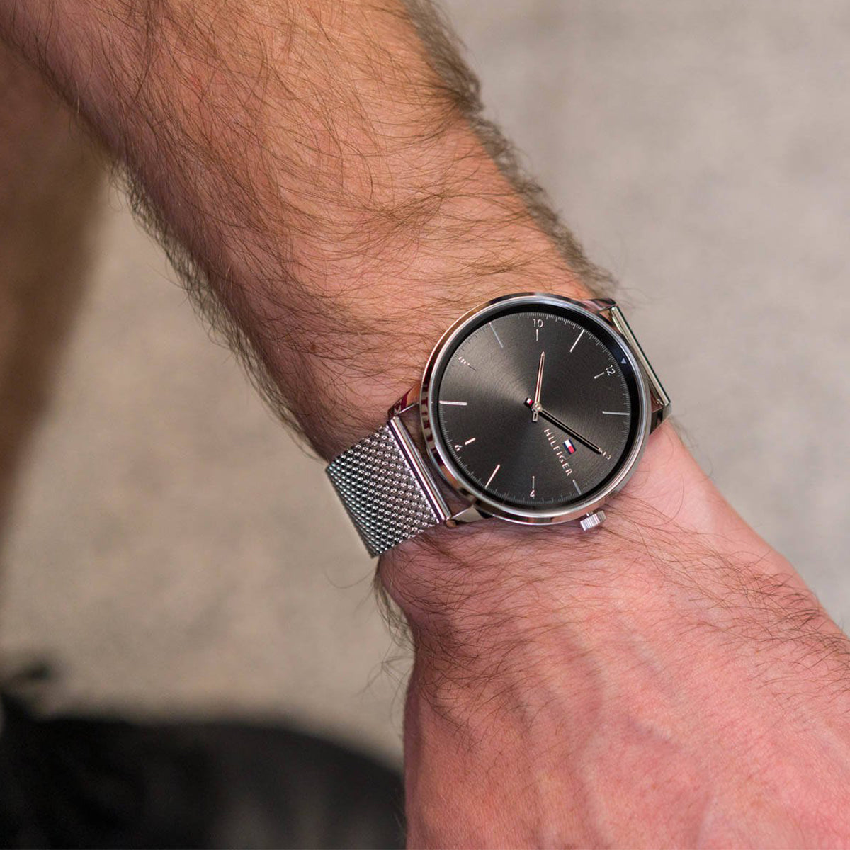 A casual watch with minimalistic inspiration. The sleek 43mm case features a minimal dial with a soft brushed textured finish. The stainless steel, blue IP, and black IP finishes are available on mesh bracelets, and leather or nylon straps. 5 ATM/ 50 Meters.
