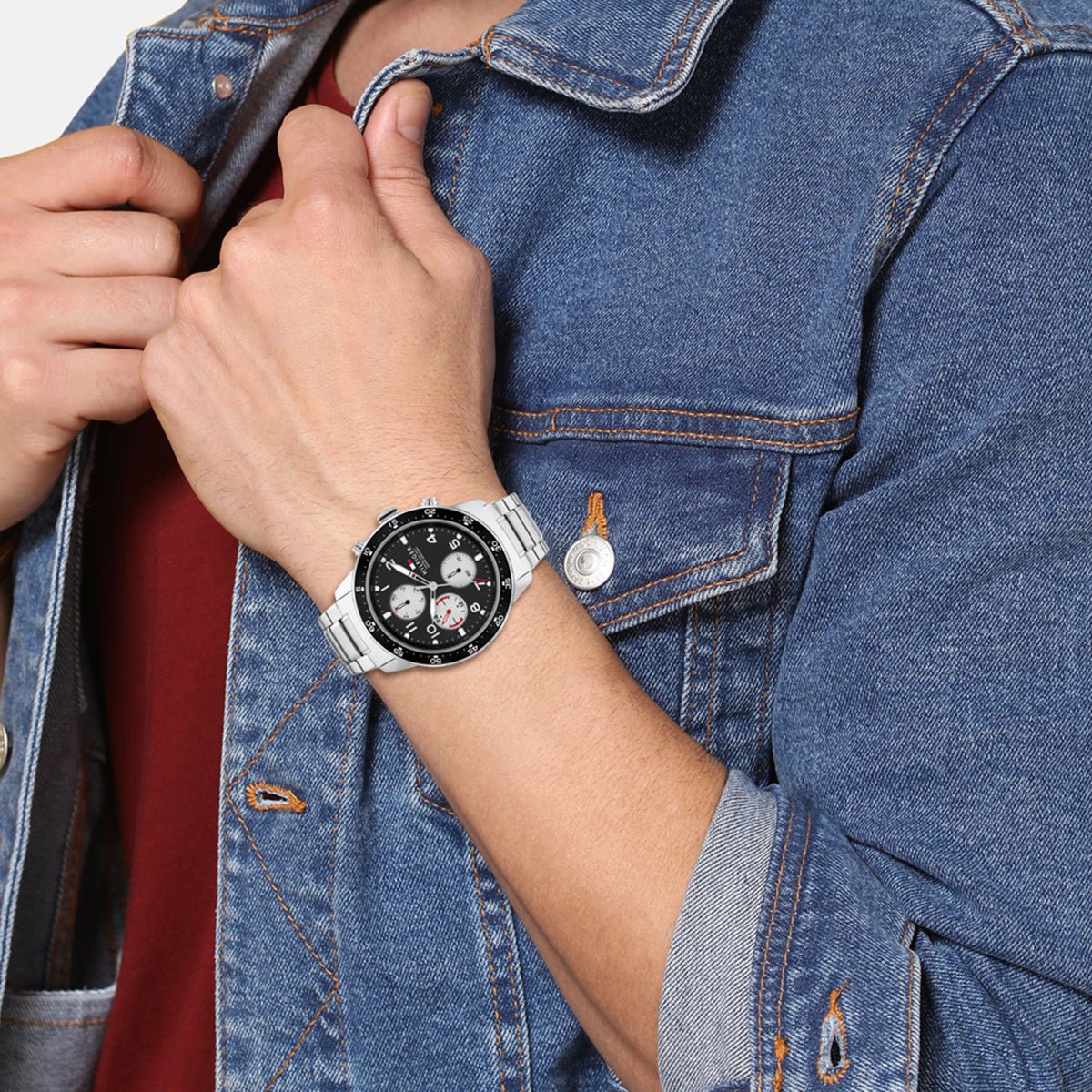 Aviator inspired, nostalgic and distinctive. Whether adventuring across town or across the tarmac this casual watch will keep you perfectly on time. Boldly styled with case and lugs, Sunray dial with flag accents and an arrow sweep. Integrated link bracelets and leather straps with a trio of sub-dials showing days of the week, date and 24-hours. 44MM