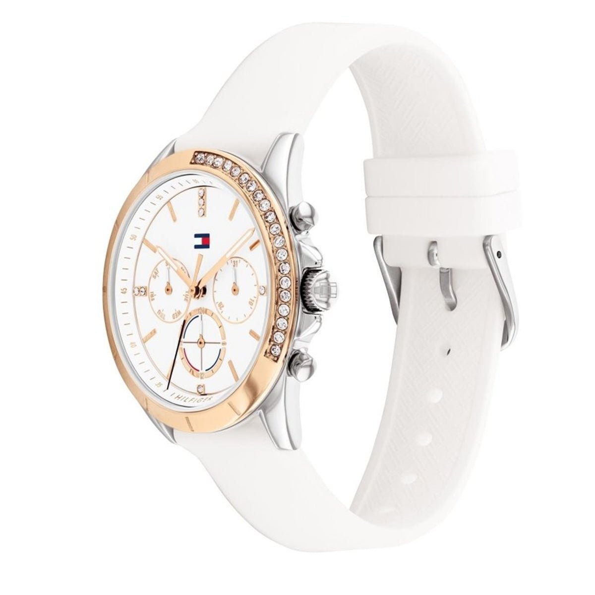 Tommy Hilfiger Kennedy 1782388 is an incredible eye-catching Ladies watch from Sport collection. Case material is Stainless Steel, which stands for a high quality of the item while the dial colour is White. 50 meters water resistance will protect the watch and allows it to be submerged in water for periods, so can be used for swimming and fishing. It is not recommended for high impact water sports.