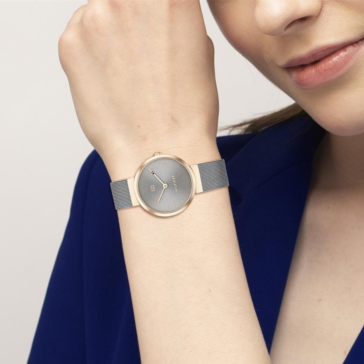 Form and function merge perfectly in this effortless timepiece featuring delicately detailed dials. Feminine touches include floral or sparkle motifs and slim hands with a touch of Tommy flag. Easy to wear anywhere 32MM case on mesh bracelet.