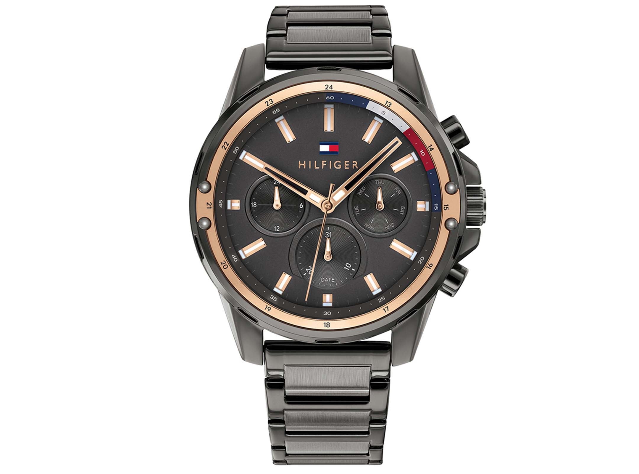Tommy Hilfiger Mason 1791790 is an amazing and special Gents watch from Mason collection. Case material is Plated Stainless Steel while the dial colour is Black. This model has got 30 metres water resistancy - it can be worn in scenarios where it is likely to be splashed but not immersed in water. It can be worn while washing your hands and will be fine in rain.