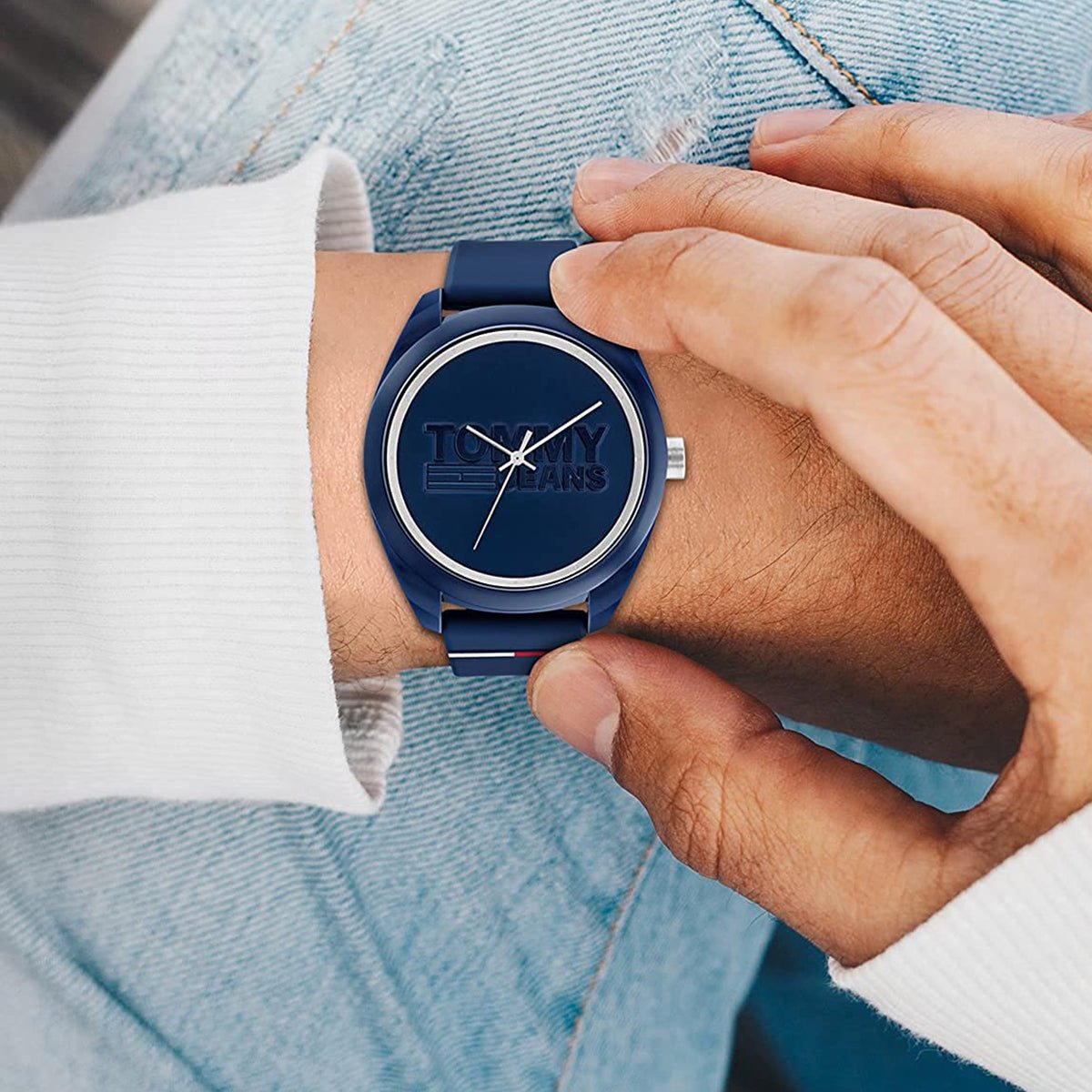 On active, smart casual days, strap on this watch featuring a blue TR90 thermoplastic case and bezel and tonal navy rubber strap.