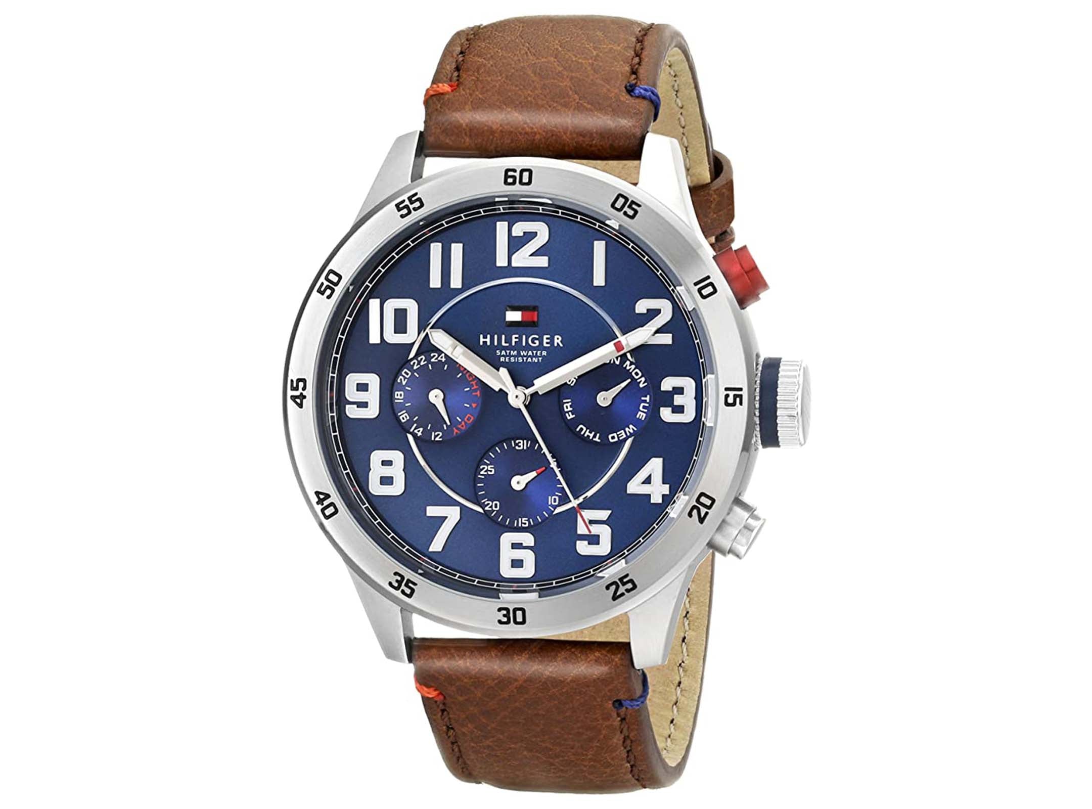 Tommy Hilfiger Trent 1791066 is a functional and special Gents watch. Case is made out of Stainless Steel while the dial colour is Dark Blue. The features of the watch include (among others) a date function. This model has got 50 metres water resistancy - it can be submerged in water for periods, so can be used for swimming and fishing. It is not reccomended for high impact water sports.